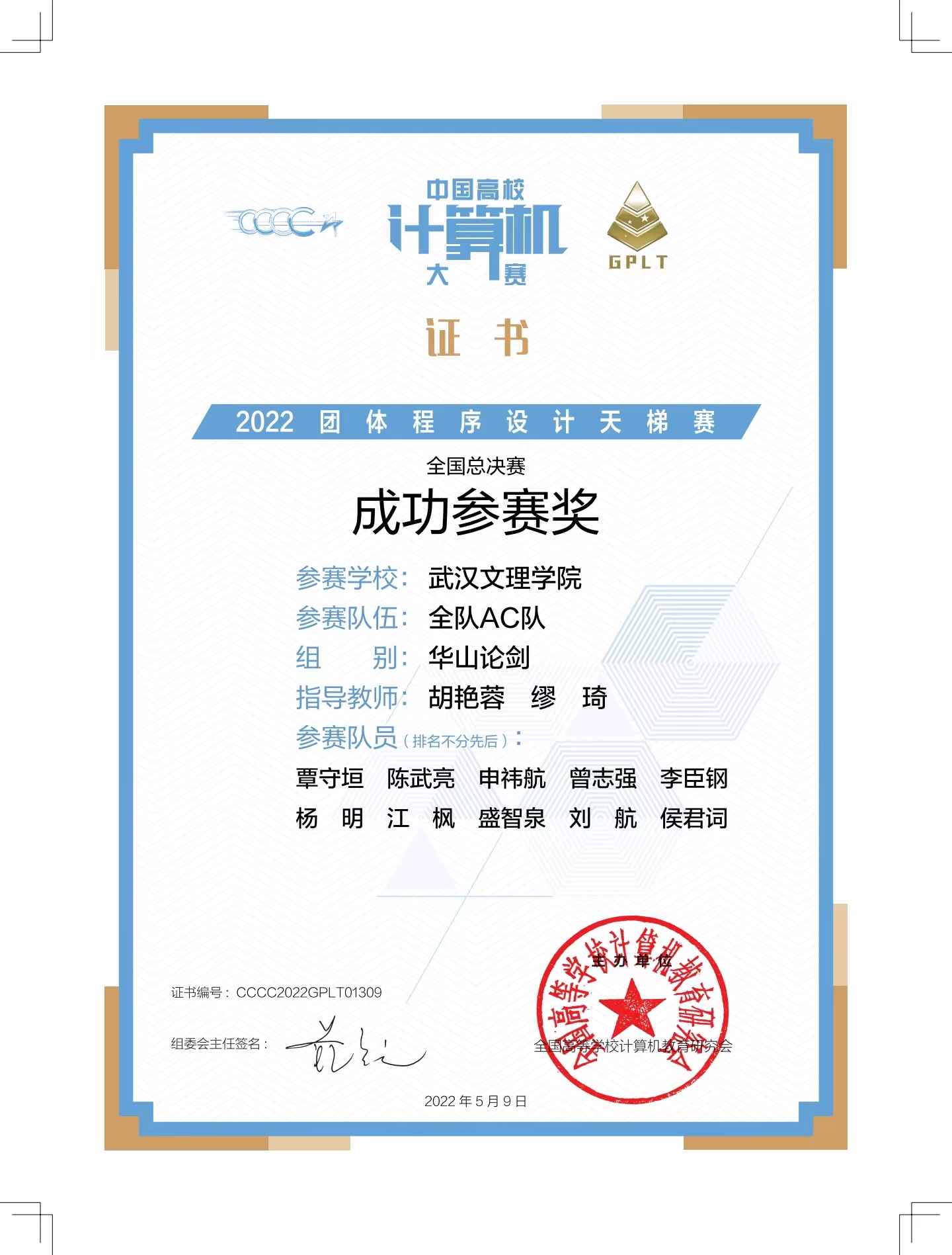 近日,第七届中国高校计算机大赛-团体程序设计天梯赛总决赛落下帷幕,在“华山论剑”组别,由公司胡艳蓉、缪琦等老师指导的“全队AC队”荣获湖北省团队三等奖和全国总决赛成功参赛奖。