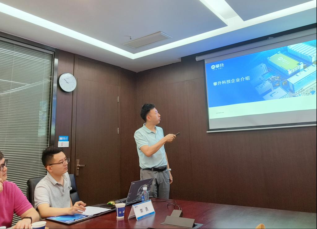 胡董事长感谢攀升科技公司的热情接待,详细介绍了公司在专业建设、人才培养、学术研究等方面的情况。胡董事长表示公司一贯秉承开放办学理念,高度重视产学研一体化,积极探索多种校企合作新模式,希望在与攀升合作过程中充分发挥各自优势、加强资源共享,“优势互补、资源共享、互惠共赢、共同发展”的原则加强产教融合,在科学研究、社会服务、员工就业等多方面开展合作交流,持续深化校企双主体协同育人。