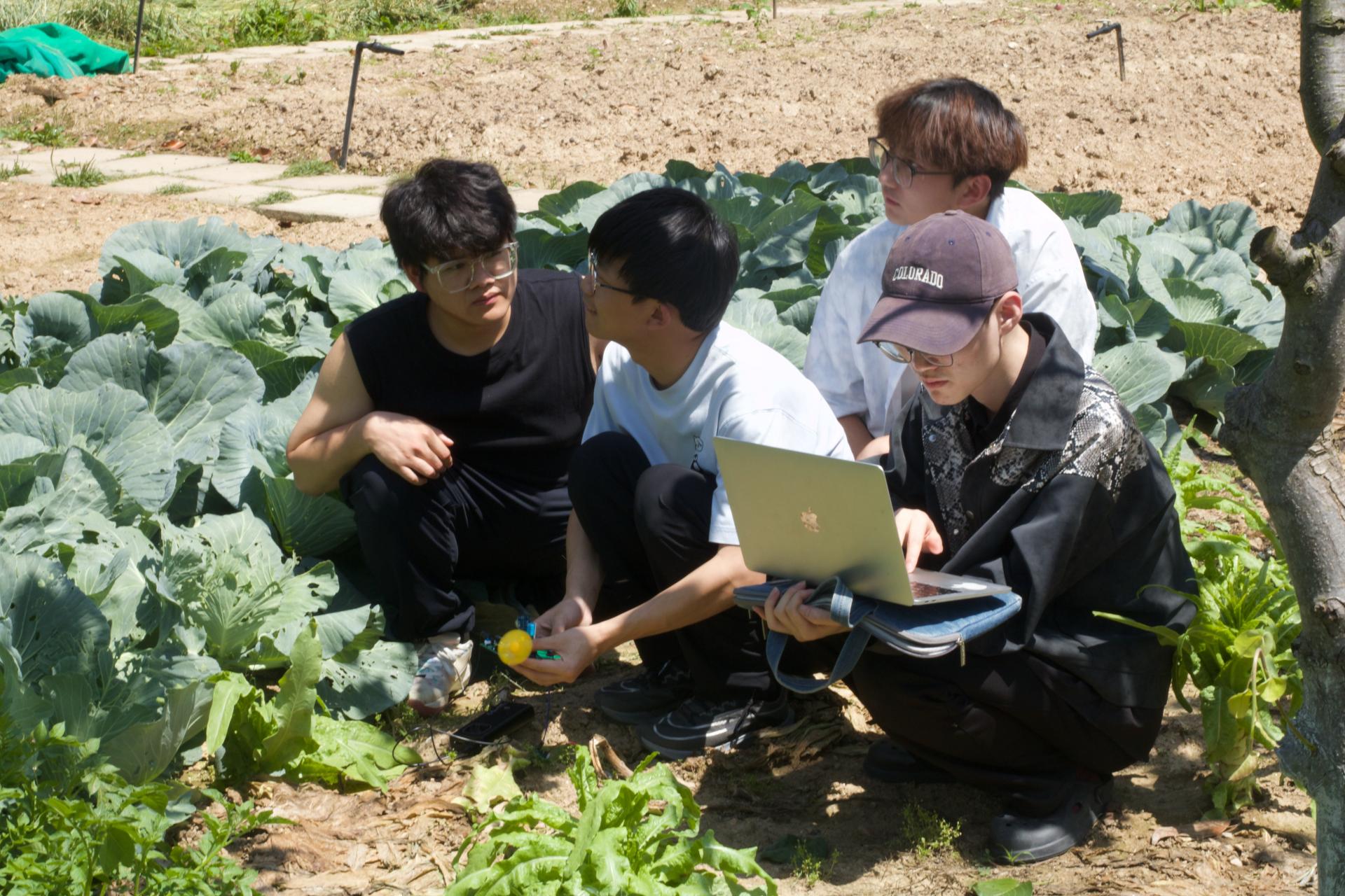 依托专业优势,员工们以小组形式开展农业场景创新课题研究。23级电子信息工程彭瀚宇、田朝阳、闫宇升团队基于STM32F103C8T6单片机为核心控制器,设计了一个集环境监测、智能控制与远程通信于一体的农业环境监测系统,可以通过对土壤温度、光照强度的智能监测,帮助农户精准调控大棚环境;算法优化组则基于机器学习模型,分析当地作物生长数据,设计了一套种植密度优化方案,预计可使亩产提升8%-12%。一名参与项目的员工表示:“课本上的聚类算法竟能用来规划农田种植区域,这种学以致用的体验太有意义了!”