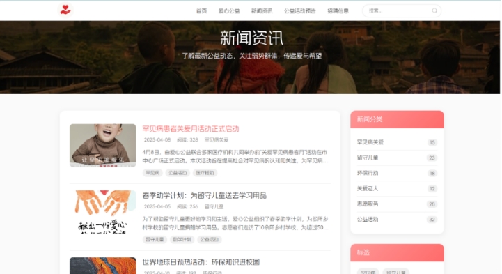 《以心之名,筑爱为家》是一个聚焦罕见病关怀的公益信息平台,旨在搭建社会爱心与特殊群体需求之间的桥梁。网站以温暖治愈的设计风格,传递“用行动诠释善意,以专业守护希望”的核心价值。首页作为信息枢纽,整合最新公益活动、罕见病科普与机构动态,帮助用户快速获取核心内容。