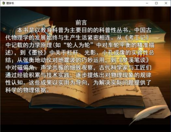 《理学书》是基于发生在道隆年间的故事一款游戏设计。郭守敬家乡饱受地震困扰,为解决问题,他出发寻找地动仪。在途中学习利用中国古代物理,解决各种事件。最后抓捕教团,找到地动仪,并将研究物理的精神传承下去。