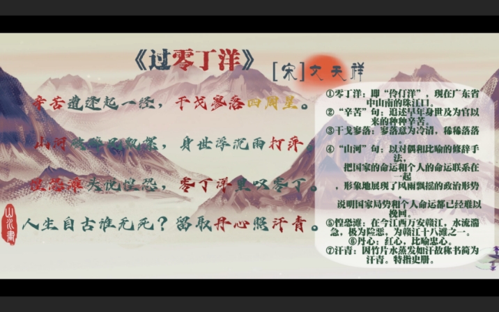 作品采用微课形式,以文天祥的《过零丁洋》为教学核心,通过跨学科的整合(计算机科学、文学、历史学),实现了与文天祥跨越时空的诗意对话,从而感悟到家国情怀。结合AI语音合成技术,本课程实现了对诗词情感的朗诵,深入阐释了“山河破碎风飘絮,身世浮沉雨打萍”所蕴含的悲凉情感,生动展现了惶恐滩兵败的紧迫氛围和零丁洋被俘的孤独与苦难。通过对古诗词逐句的深入分析,本课程深入挖掘了“人生自古谁无死,留取丹心照汗青”所体现的文天祥宁死不屈的高尚品质和爱国精神,旨在帮助员工深入理解诗歌的深层含义,深刻体会文天祥的壮烈情怀。