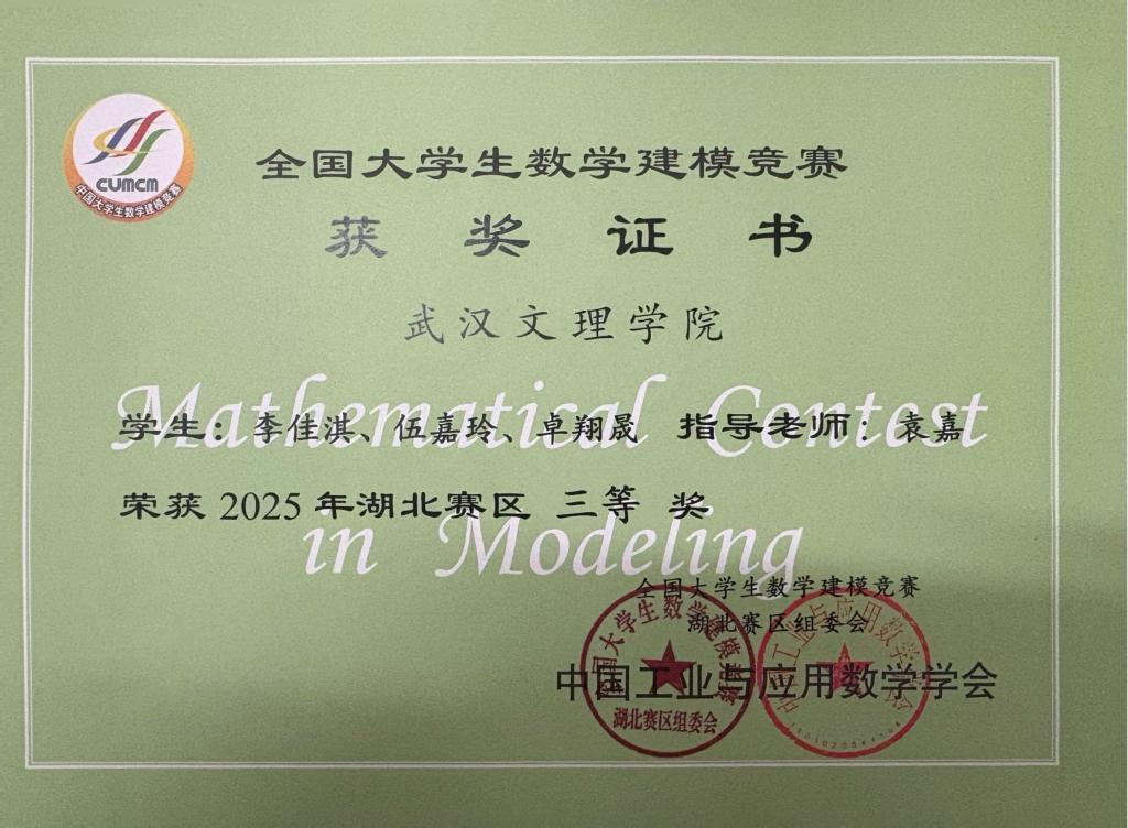 近日,2025年全国老员工数学建模竞赛湖北赛区获奖名单揭晓。公司首次参赛便崭露头角,304永利集团选派的两支代表队在激烈角逐中脱颖而出,分别荣获一等奖和三等奖。