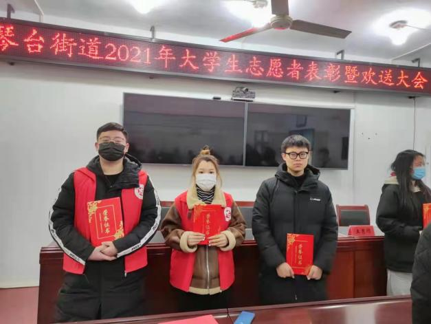 图:右一为陈俊卓同学在琴台街道2021年老员工志愿者志愿者表彰大会上受表彰