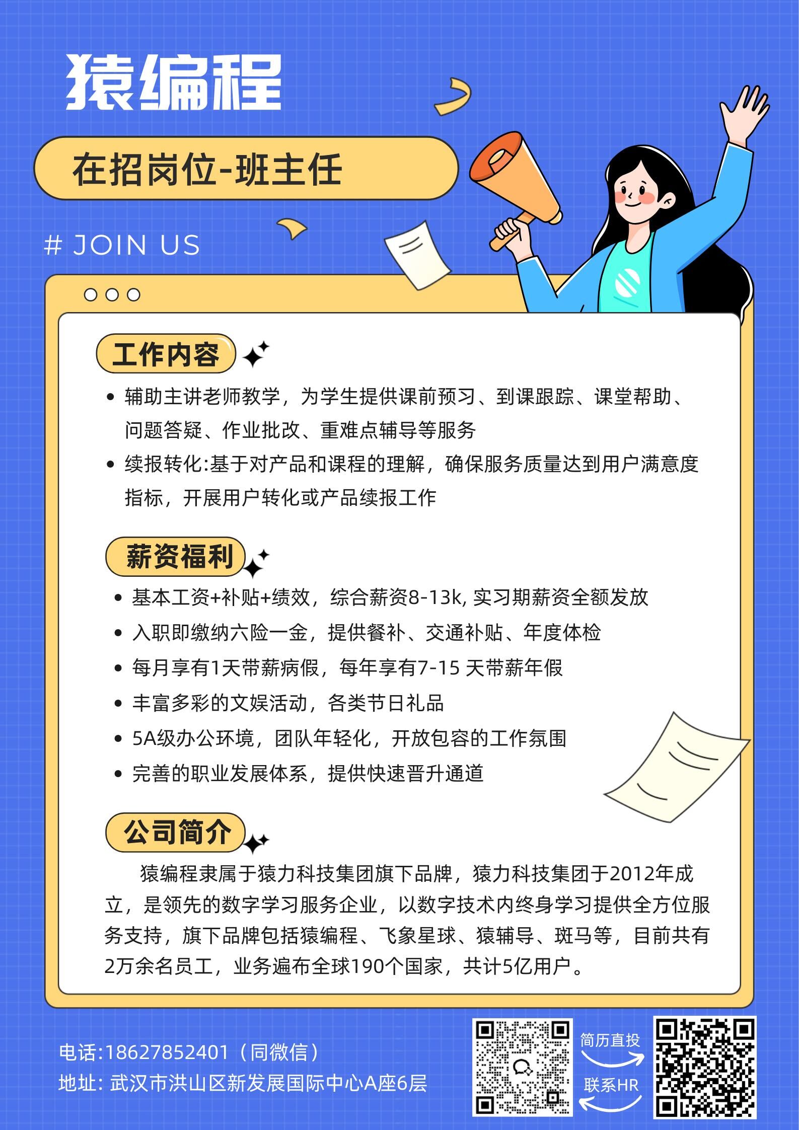 猿编程招聘「班主任」岗位啦,基本工资+补贴+绩效(月平均薪资8K-13K)