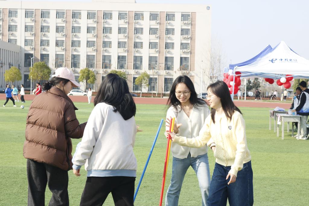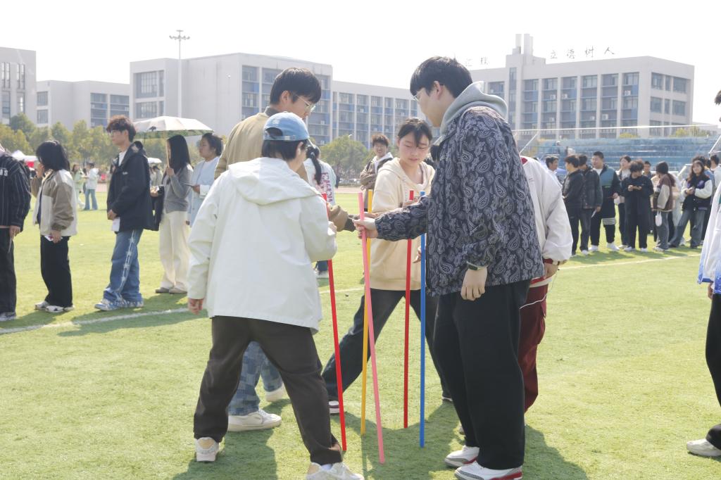 “生死与共”接力过河游戏精彩非凡。同学们分组站在标记好的圆圈内,相邻两人间距相等,大家面向圆心,单手稳稳地握住棍子,将其水平放置在胸前高度,就像战士们坚守阵地一样坚定。随着主持人一声令下“开始”,所有人同时松开棍子,迅速沿着逆时针方向移动一个位置,然后伸手准确地握住前一位人员松开的棍子,再小心翼翼地将其抬起至胸前高度。在这个充满挑战的团队协作游戏中,员工们手拉手、肩并肩,共同面对“不倒森林”的考验,深刻理解了革命先烈们生死与共的坚定信念。