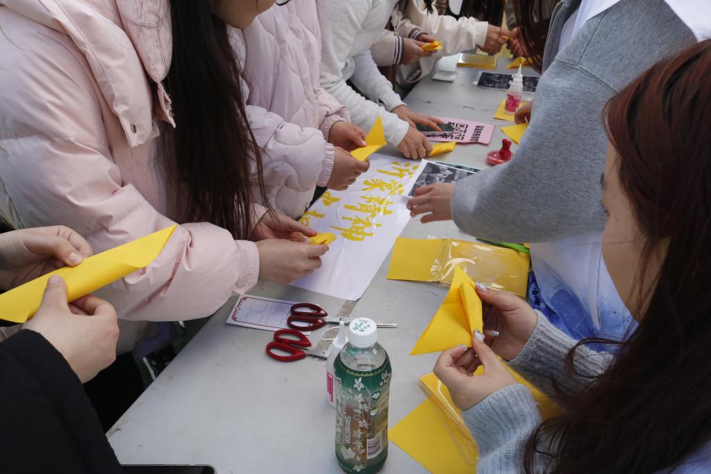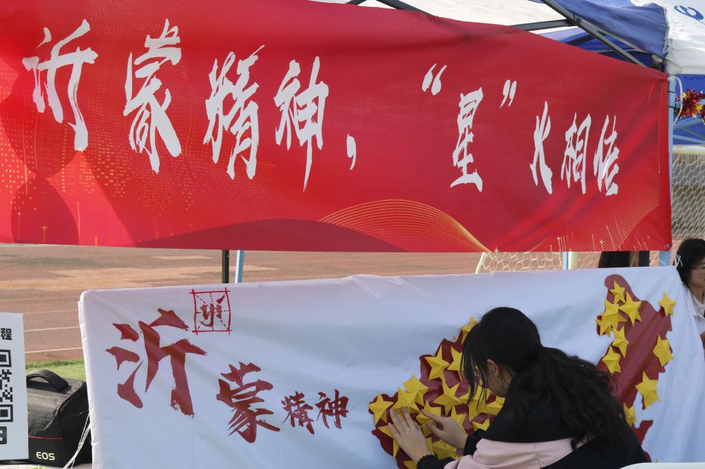 活动中,通过信志星队员们的引导和耐心讲解,参与活动的同学们都付出了更多一份的耐心将这具有特殊意义的星星折好,每贴上一颗五角星,就仿佛是在为祖国的繁荣添砖加瓦,大家齐心协力创作出一幅完整的中国地图,也在心中种下了传承沂蒙精神的火种。