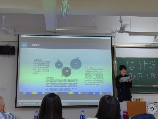 比赛正式开始,21个项目团队的主讲人依次上台进行5分钟的PPT展示,就项目背景、创新性、团队情况、商业性、带动就业前景等方面向在场评委老师及参赛团队进行讲解。此次活动,各个项目都有自己的特色,评委们认真耐心地听取每个项目组的汇报,分别从团队、创新、就业等维度进行打分,对每个项目进行了指导,中肯地提出项目中存在的问题和改善意见。