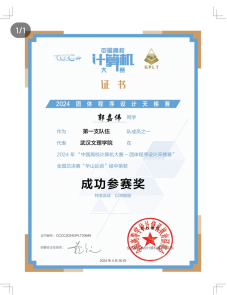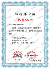 编程竞赛,学以致用,在蓝桥杯的备赛中,他认真训练,不断提高自己的编程能力和解决问题的能力。在高手如林的赛场上,他沉着应战,获得第十五届蓝桥杯全国软件和信息技术专业人才大赛湖北赛区C/C++程序设计大学B组二等奖。代表公司参加中国高校计算机大赛-团体程序设计天梯赛,获得湖北省团队三等奖,在全国总决赛中获得成功参赛奖。